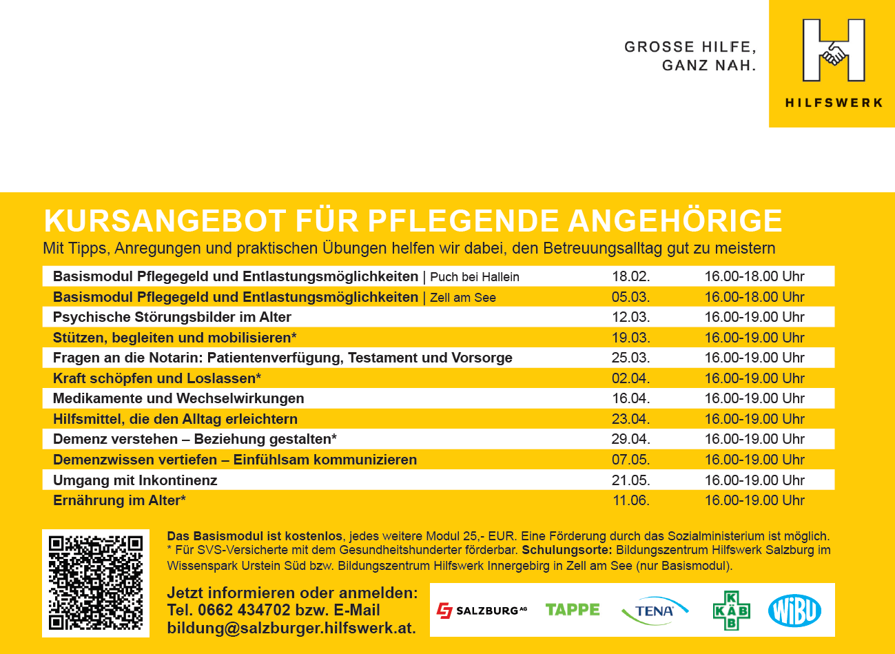 Flyer Pflegetraining Frühjahr 2026 HIlfswerk Salzburg